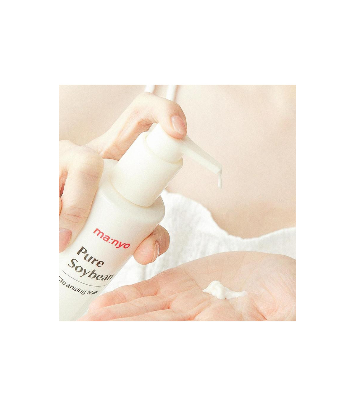 Limpia y nutre tu piel con Manyo Pure Soybean Cleansing Milk 200 ml, la leche limpiadora ideal para una piel suave, hidratada y equilibrada.
