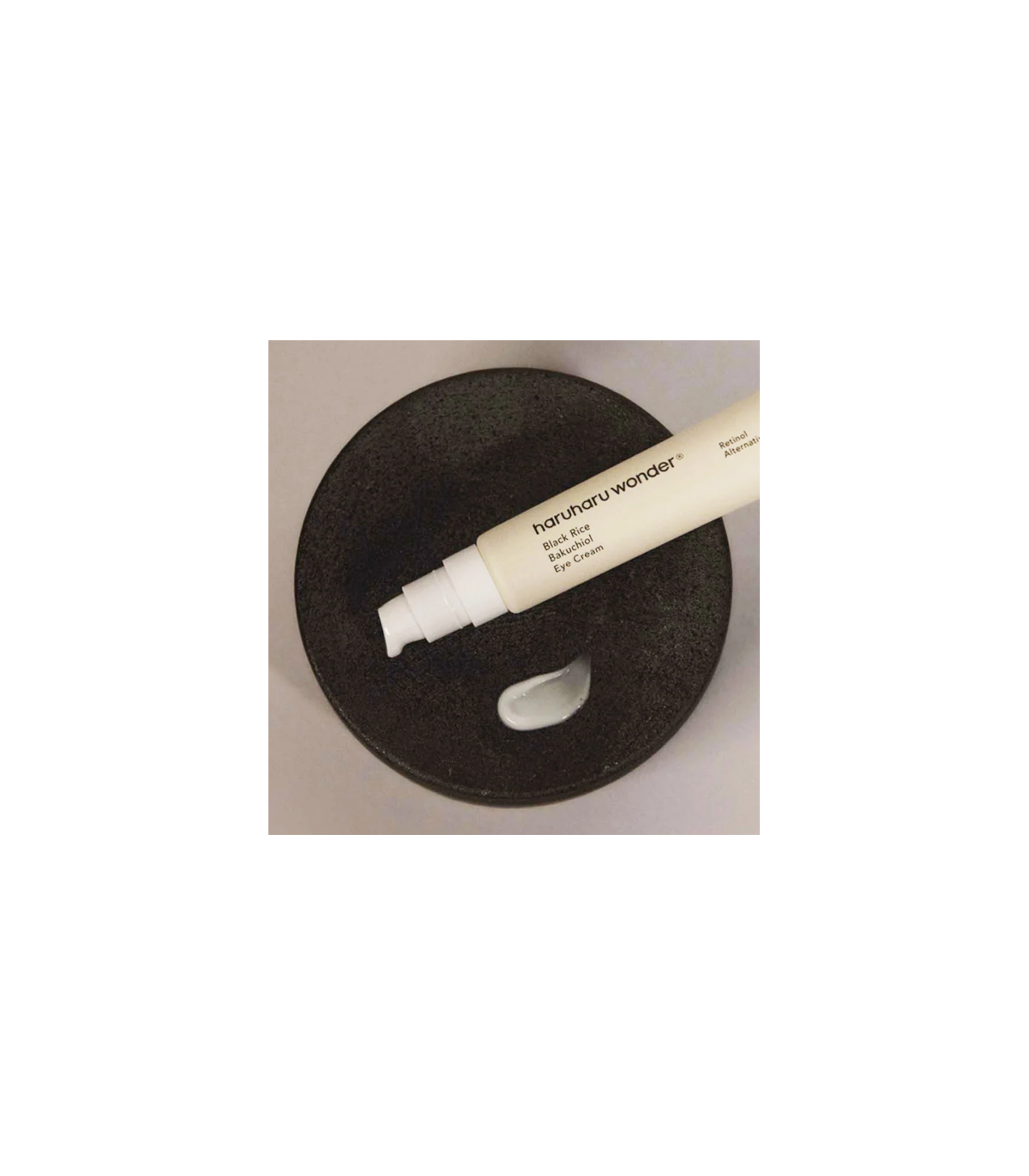 Haruharu Wonder Black Rice Bakuchiol Eye Cream es un tratamiento específico para el contorno de ojos formulado con bakuchiol, alternativa vegetal al retinol, y extracto de arroz negro fermentado, rico en antioxidantes.