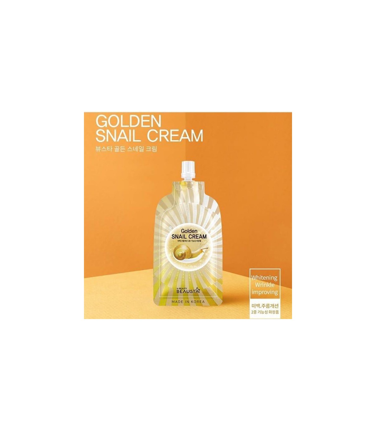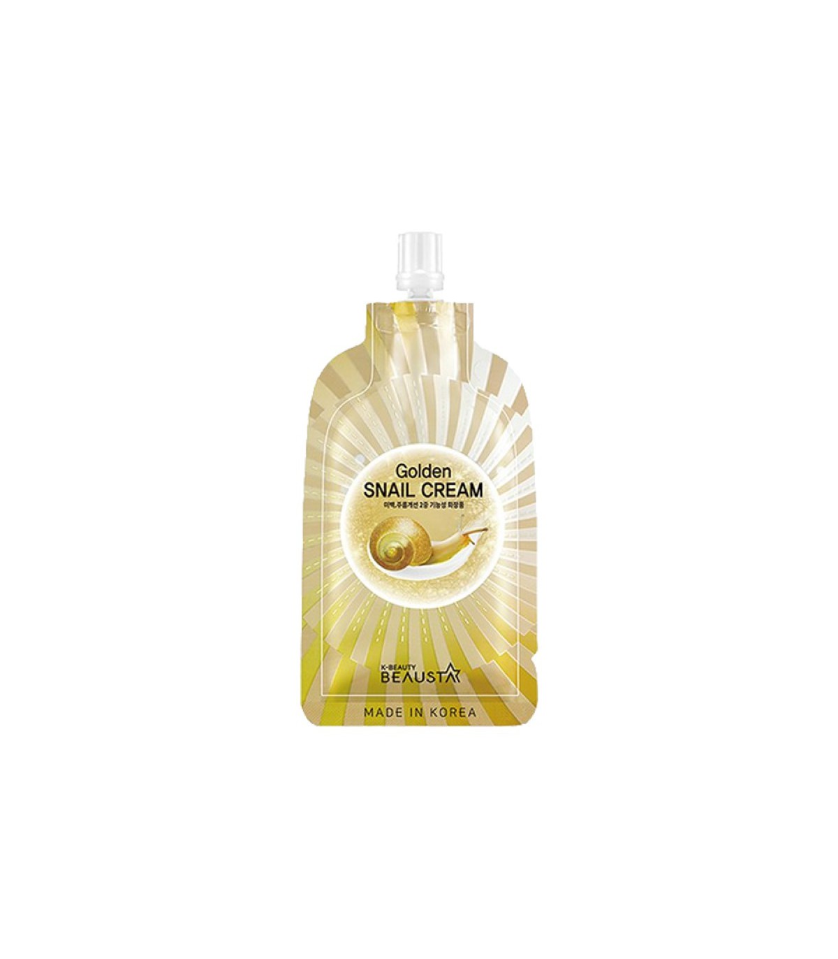 Beausta Golden Snail Cream es una crema facial con extracto de caracol que hidrata, ayuda a mejorar la textura de la piel, y elimina los rastros de acné y otras imperfecciones.