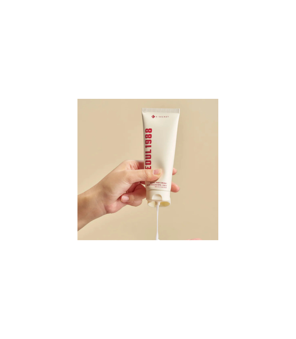 K-Secret Seoul 1988 Cream Snail Mucin 93% + Rice es una crema intensiva formulada con 93 % de mucina de caracol combinada con extracto de arroz, dos ingredientes emblemáticos de la cosmética coreana conocidos por su potente acción regeneradora, hidratante y suavizante.