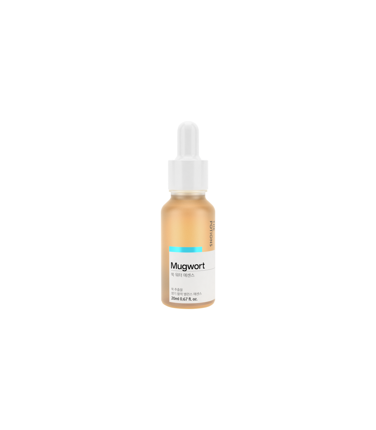 The Potions Sérum Mugwort Water Essence está elaborado con extracto puro de artemisa altamente concentrado para calmar la piel sensible e hidratarla profundamente.