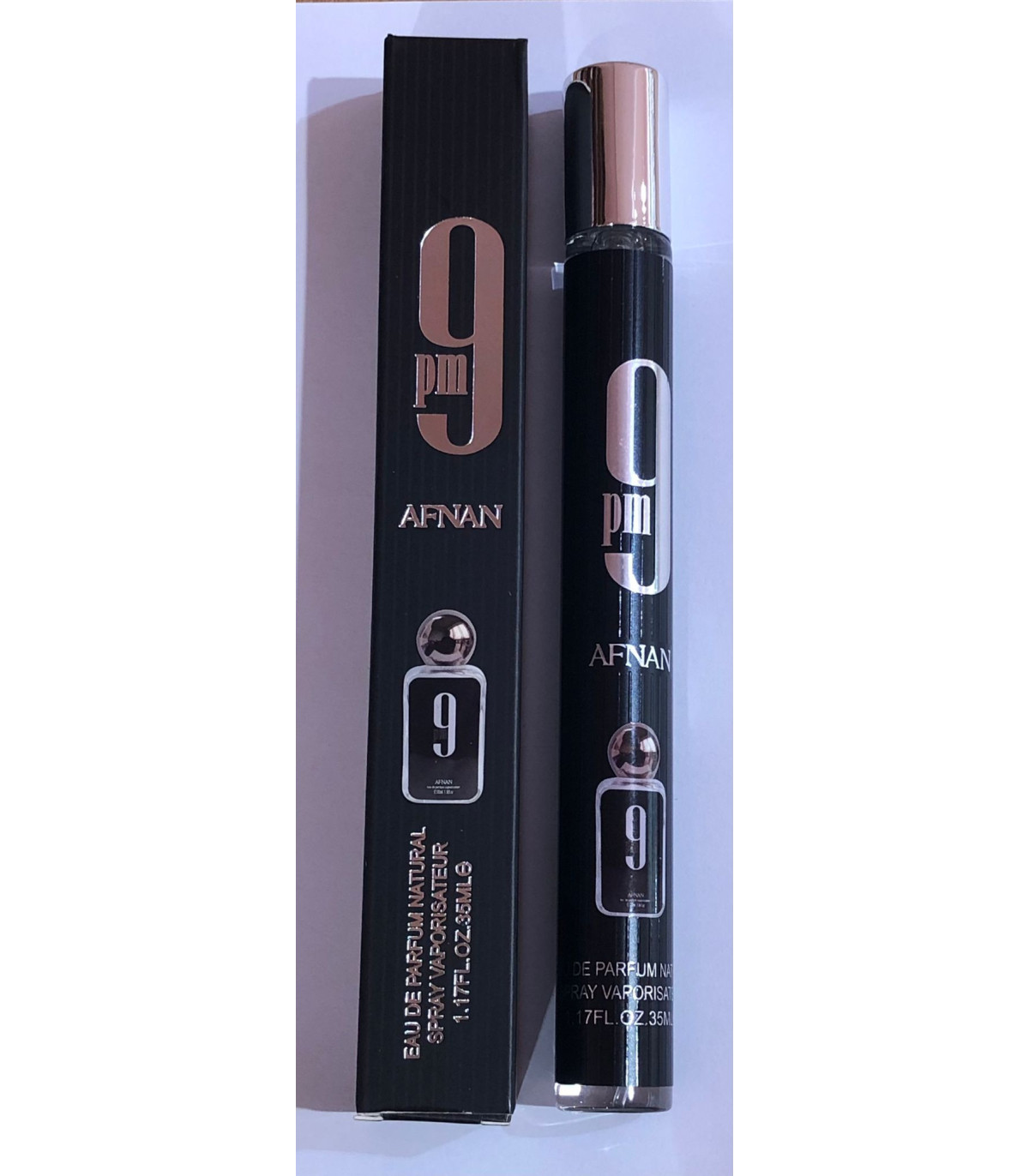 Afnan 9PM en su presentación 35ml conserva el carácter sofisticado, intenso y seductor de la versión original. Combina notas dulces de vainilla y ámbar con especias cálidas y un toque fresco inicial, creando una fragancia masculina envolvente, moderna y con gran presencia.