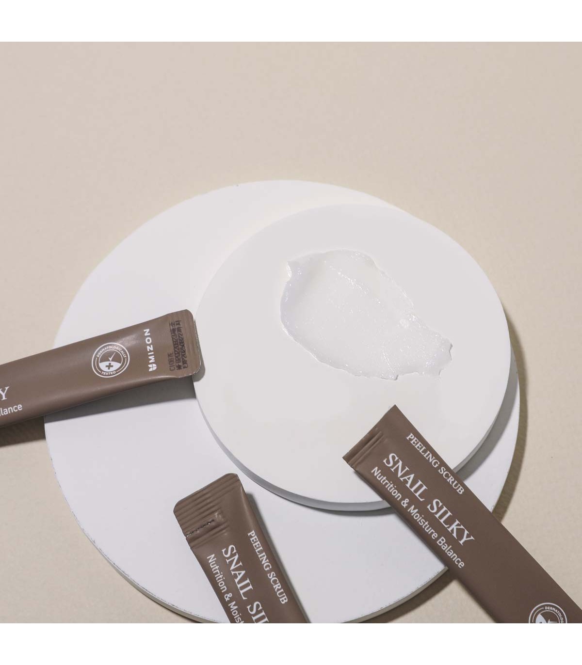 Snail Silky Peeling Scrub, peeling exfoliante hipoalergénico creado por el equipo de I+D+i, con doble acción de exfoliante e hidratante de la piel, gracias a las finas partículas de levadura en polvo, secreción de baba de caracol, ceramidas y Centella Asiática.