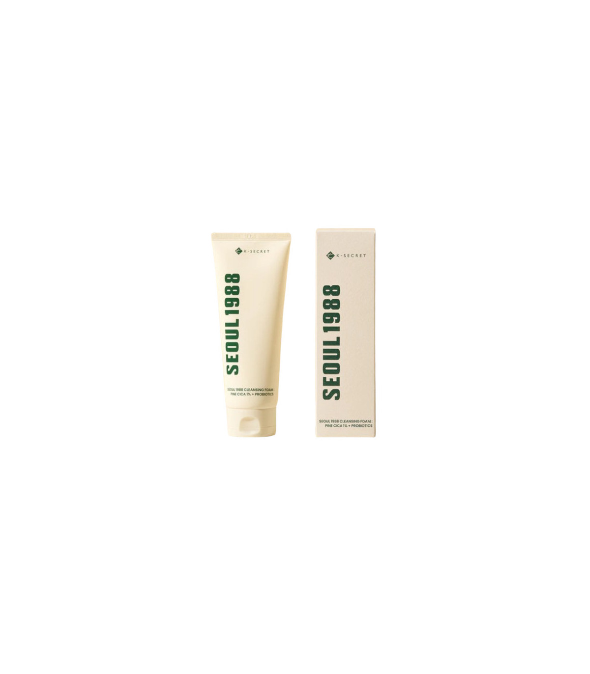 K‑Secret Seoul 1988 Cleansing Foam Pine Cica 1% + Probiotics es una espuma facial delicada diseñada para limpiar profundamente la piel, eliminando suciedad, restos de maquillaje ligero y sebo sin alterar la barrera cutánea. Su fórmula combina 1 % de extracto de cica (Centella Asiatica), probióticos y extracto de pino, aportando efectos calmantes, nutritivos y equilibrantes.