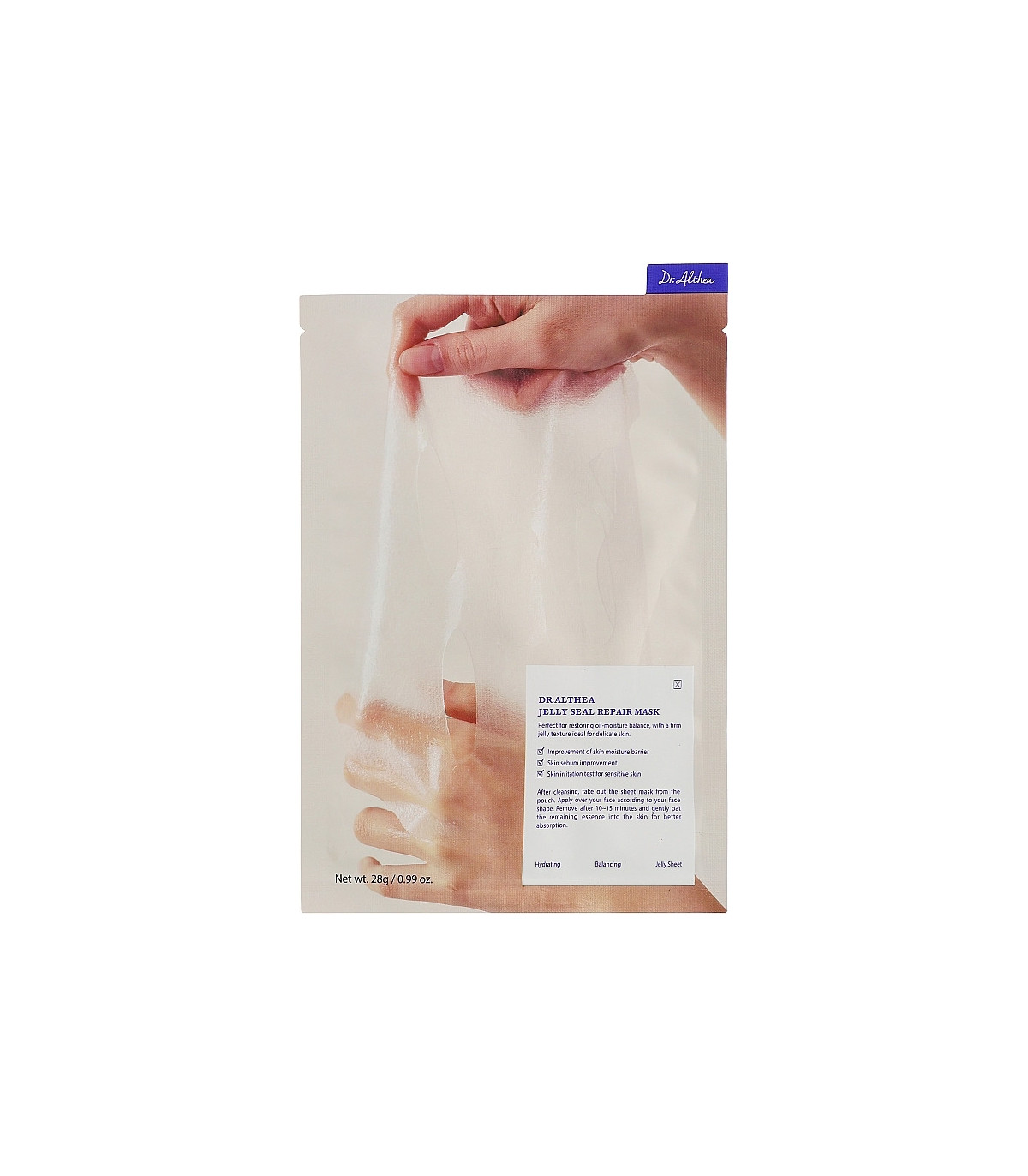 Jelly Seal Repair Mask de Dr. Althea es una mascarilla facial de textura gelificada diseñada para aportar una hidratación profunda y duradera mientras ayuda a restaurar la piel estresada o deshidratada. Su tecnología de “jelly seal” forma una capa flexible que se adhiere perfectamente al rostro, permitiendo una mejor absorción de los activos y evitando la pérdida de hidratación.