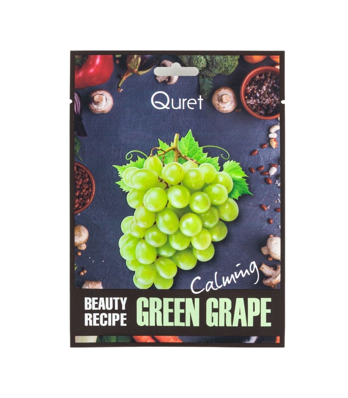 Mascarilla facial vegana formulada con extracto de uva y ácido hialurónico que calma y alivia las irritaciones. Ideal para pieles sensibles.