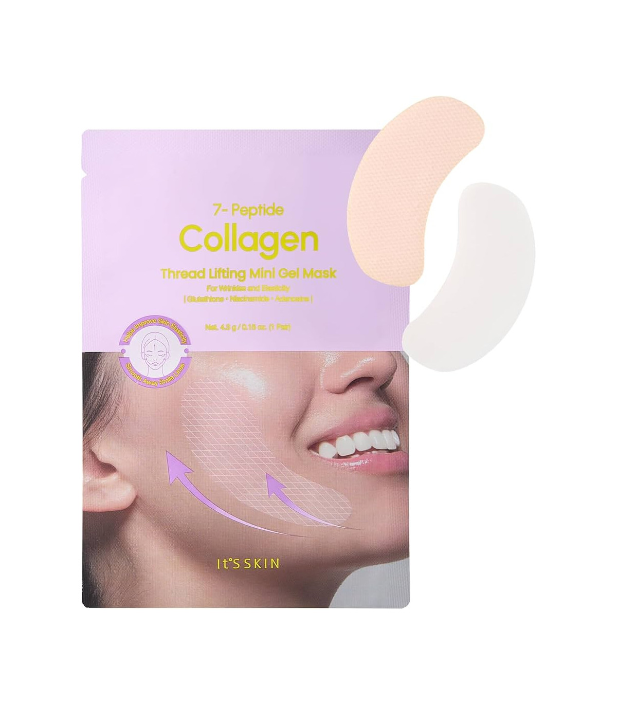 Realza y reafirma tu piel donde más lo necesitas con Itsskin 7 Peptide Collagen Thread Lifting Mini Gel Mask, las mascarillas de gel perfectas para un efecto lifting y una piel más suave, firme e hidratada.