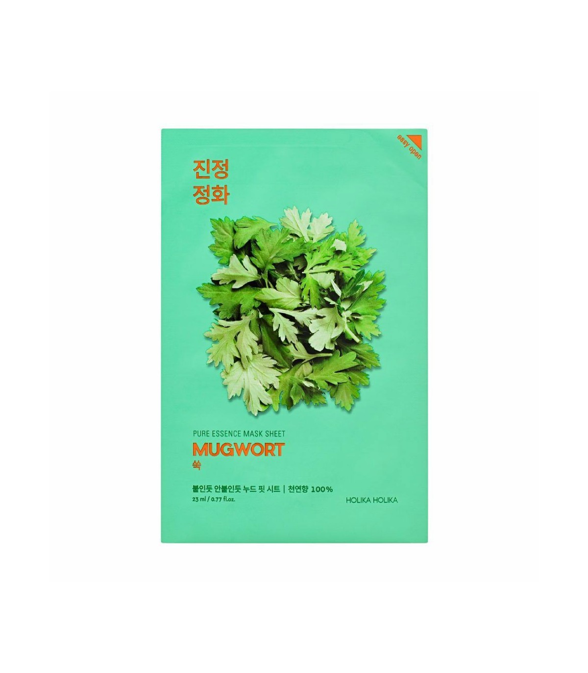 Holika Holika Pure Essence Mask Sheet Artemisa 23ml es una mascarilla de tela con extracto de artemisa que ayuda a aliviar la piel y sus irritaciones. Con extracto de ajenjo que tiene un efecto tónico y antiinflamatorio. Indicado para pieles sensibles e irritadas.Aumenta la elasticidad, rejuvenece la piel y mejora su condición. Reduce la producción de sebo, alivia la inflamación y acelera la curación de pequeñas heridas e imperfecciones.