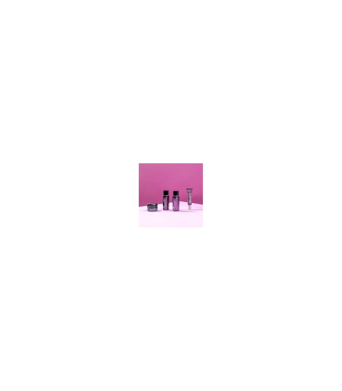 Un conjunto en miniatura de elementos esenciales nutritivos para el cuidado de la piel que prepara tu piel para una apariencia más firme.