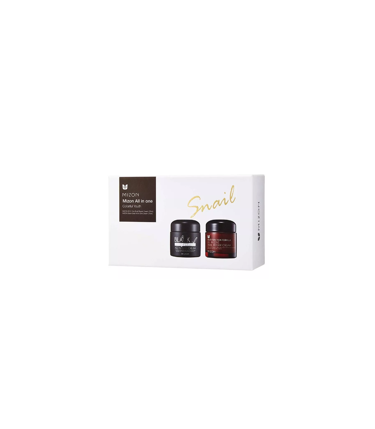 Las extraordinarias propiedades reparadoras de la baba de caracol se han celebrado desde hace mucho tiempo en la industria de la belleza. Sin embargo, los principales especialistas de la marca coreana Mizon han logrado aprovechar estas propiedades en dos cremas faciales excepcionales. El All In One Colorful Youth Snail Set es famoso por sus propiedades rejuvenecedoras, fortalecedoras, protectoras y regeneradoras. Estos productos de belleza mejoran la suavidad, la firmeza y la elasticidad de la piel, protegiéndola de los efectos nocivos de los factores externos, que son la principal causa de las pequeñas imperfecciones.
